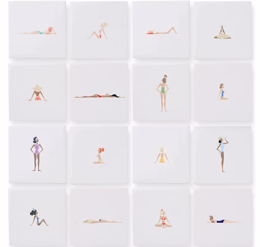 Swimmers, skiers, and waddling penguins decorate the delightful, minimalist tiles of Alexandra Browne.