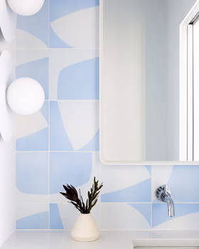 Create a sweeping statement that flows from floor to shower with a perfect pattern. Get the look with Blue Bolonia from Bert & May, Lacour Artic from Codicer 95, or Vaporetto Burano Lagoon from Claybrook Studio.